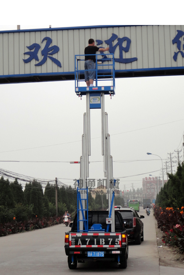 產(chǎn)品規(guī)格:車載鋁合金式升降平臺(tái)根據(jù)升降高度可分為:?jiǎn)沃?/span>6、8、10米,雙柱6、8、10、12米升降平臺(tái),設(shè)備載重150公斤至200公斤??蛻艨筛鶕?jù)需求選用解放、東風(fēng)、輕騎、福田、電瓶車等任何車型,設(shè)備直接采用汽車或電瓶的直接動(dòng)力升降。